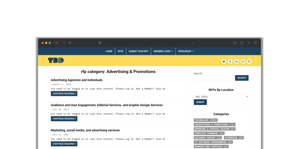 The Bid Daily (TBD) is a marketplace dedicated to connecting government, public, and non-profit organizations with vendors. Our platform allows these organizations to publish RFPs, RFIs, and RFXs at no cost. For vendors, TBD offers a valuable resource to discover new opportunities and participate in technology bids. Our platform enables vendors to easily find and access relevant technology bids and RFPs, ensuring they never miss a chance to showcase their expertise and win new contracts.